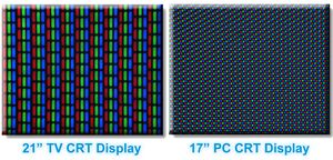 - Shadow Mask - The most common variety of CRT TV, many variations in size and picture quality. Comes in two forms: Slot mask (shown here), and dot mask. Slot mask is more common for TVs and the dot mask for monitors.