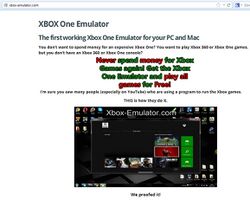 - An emulator simply named "Xbox One Emulator" - Joshua Cannell from MalwareBytes said that this emulator has files from PCSX2, had fake "proved" images and videos, and gives you a trick used to gather your personal information for spam and other malicious purposes.