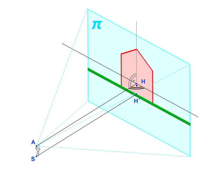 Auf dem flachen Gelände ist also der Abstand zwischen der Kamera (A) und dem Boden (S)