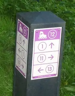 A junction network consists of numbered junctions of which the numbers are signposted on the routes in between. More explanation on how to use rin_ref=* can be found at route=inline_skates.
