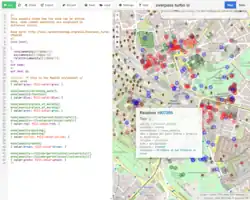 A fullscreen, clickable map showing the results of the current query. POIs and Ways are clickable, just like in overpass turbo itself. - get current map state