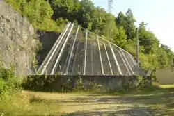 Hydropower systems are intended to convert energy from moving or pressurised water into electricity or mechanical rotating energy. There are many kind of such power plants and sometimes, pretty big infrastructure is needed to carry water from intakes to turbine generators. High pressure pipes leading to generators are necessarily shielded and are called penstocks.