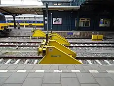 | Buffer stop | railway=buffer_stop | Stops the train at the end of a track | ![]() |
