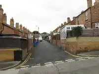 Alley streets are a road classification found in Baltimore, Maryland, USA[1], and potentially other places. Alley streets are alleys by definition, i.e., they serve the rear of buildings, but are named. Most named alley streets have addresses assigned to them, often small homes or carriage-houses that have been converted into homes, due to Next Generation 911 (NG911) standards that require local governments to sign any public street with addresses. Alley streets may have sidewalks but they are small and designed to house trash cans or steps down from homes. Alley streets do not typically have on-street parking, which distinguishes them from residential streets.