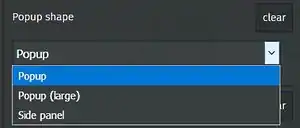 Click of a shape show the Popup. Click of the associated Label does nothing. Configuration of On here will show the Popup if the label is clicked.