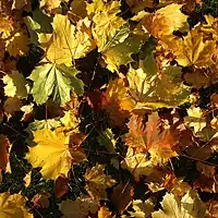 Fallen leaves, often associated with autumn