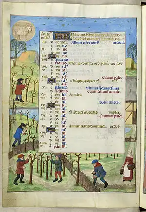 Calendar page for March. 1480s