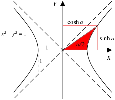 The independent variable of a hyperbolic function is called a hyperbolic angle. Just as the circular functions sine and cosine can be seen as projections from the unit circle to the axes, so the hyperbolic functions sinh and cosh are projections from a unit hyperbola to the axes.