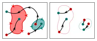 ![]() A 2D image showing the intersection of a multi-path (dark blue dashed curves) with a multi-surface (dark red solid curves). Positive intersection points (red circles) occur when a path intersects a surface in the preferred direction. Negative intersection points (teal circles) occur when a path intersects a surface in the opposite direction. The intersection is effectively a multi-point. |