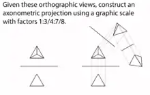 - This new view should present an axonometric view in which the edges are at (<D) and (<E) relative to the transfer/construction lines.