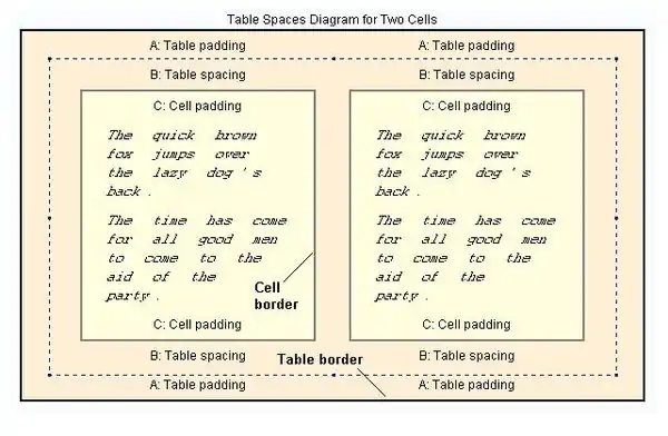 The table spaces are just the main table elements and the adjustable parts within it. This short section explains the terminology of the table and gives some idea of the nature of its formatting.