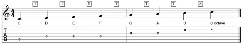 The major scale (or Ionian mode) is the main scale currently used in music. It is made up of seven notes plus an eighth which duplicates the first an octave higher. The Italian music system "solfeggio" where each note is sung using a syllable - "Do, Re, Mi, Fa, Sol, La, Ti, (Do)" - may help in illustrating this concept.