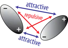 Where μ1 and μ2 are the magnitude of the two dipole moments, r is the distance between the two dipoles and θ1, θ2, and Φ describe the orientation of the two dipoles. This potential energy decays at a rate of .