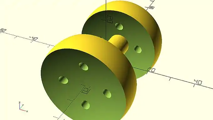 simple_wheel(wheel_radius=wheel_radius, wheel_width=wheel_width);