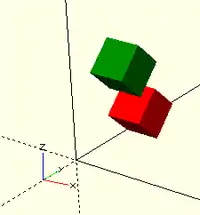 color("red") translate([0,10,0]) rotate([45,0,0]) cube(5);