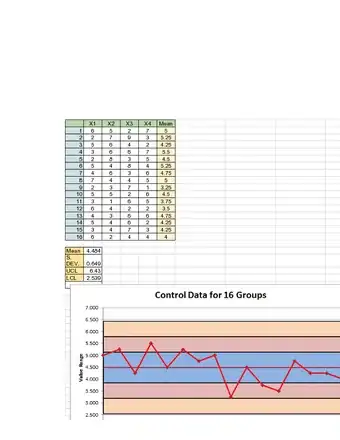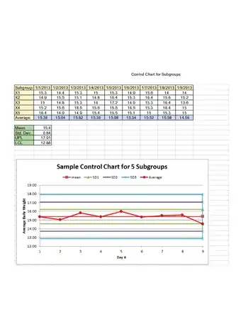 Graph the X-bar Control Chart, by graphing the subgroup means (x-axis) verses measurements (y-axis).[5] Your graph should look like something like this: