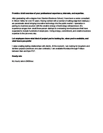 Write a brief overview of your skills, experience, and interests. Click the text field below the "Write a professional overview" heading, and enter a detailed profile summary here.