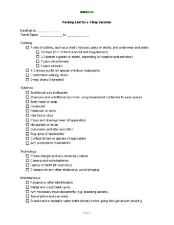- Check the specific forecast for each of the seven days that you’ll be gone. Many websites, like weather.com or AccuWeather, provide forecasts for anywhere in the world.[3] [4] Even though weather predictions are not always accurate, this is a good way to get a sense of what to expect.