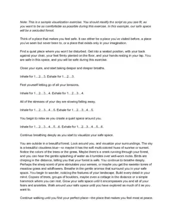 - Use guided imagery to help clear your mind. Imagine a place, real or fictitious, in which you feel at peace and stress-free. Focus on being in this place, including the details of what it looks like and how you feel in it.