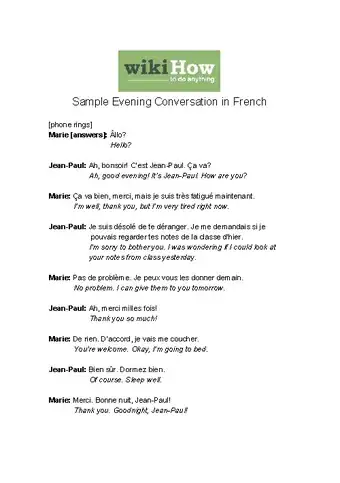 To say “Goodnight” in French, say “Bonne nuit.” Alternatively, if you want to greet someone at night by saying “Good night” or “Good evening,” tell them “Bonsoir!” To let people know that you’re going to sleep, say “Je vais dormir.” However, if you want to say that you’re going to bed, you’d tell them “Je vais me coucher.” For a more conversational, slang way of saying your going to bed, say “Je vais pieuter,” or “Je vais roupiller,” which essentially means “I am going to snooze.” To learn other ways to say goodnight, keep reading!