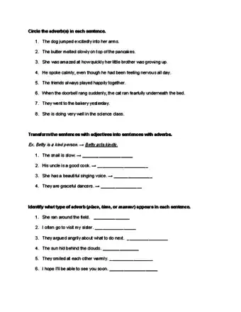 • This is great exercise for beginner students, as it eases them into an understanding of adverb importance.