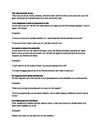 Find time once a day to tell or show him your love. If you make an effort to show you love once a day, whether with a good-night "I love you" or by simply putting his toothpaste on his brush for him, you'll keep the relationship strong for a long time. If you're worried about showing your affection, just think about finding one time a day where you can. Even an extra-long, passionate kiss is a great way to slow down time with your man for a half-second. [4]