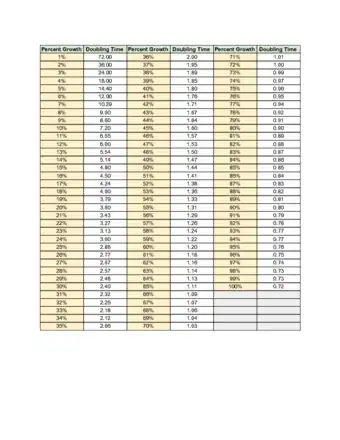 1Let R x T = 72. R is the rate of growth (the interest rate), and T is the time (in years) it takes to double any amount of money.[3]