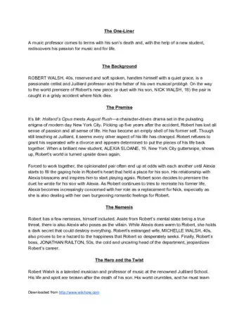 4Include front-matter. This includes any prologue you'd like to include to the play, a list of characters and a short description of them, any notes you'd like to include about the set up of the stage or other directing guidelines, and possibly a brief summary or outline of the play if you're considering submitting the play to theatre contests.