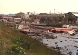 Tsunami deposits associated with this earthquake have been recognised onshore, on the coast and in the Sea of Japan.[8] Offshore both mass failure deposits and turbidites have been observed that are dated to later than 1954 from high caesium-137 levels in the overlying sediments.[9]