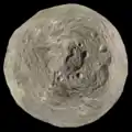 Several old, degraded craters rival Rheasilvia and Veneneia in size, although none are quite so large. They include Feralia Planitia, shown at right, which is 270 km (168 mi) across.[79] More-recent, sharper craters range up to 158 km (98 mi) Varronilla and 196 km (122 mi) Postumia.[80]