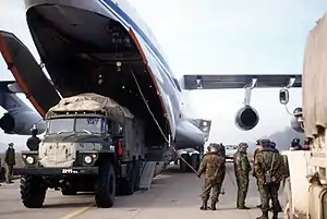 The VTA traces its history to the formation of the first transport aviation unit in the Leningrad Military District on 1 June 1931.[2] In 1955–56 air transport units were removed from the Soviet Airborne Troops and the VTA itself was created.[3]