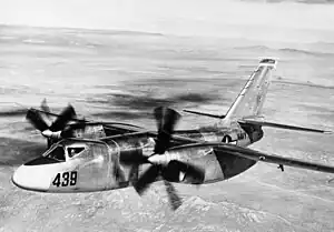 The XA2J-1 during its first flight at Edwards Air Force Base, California, on 4 January 1952