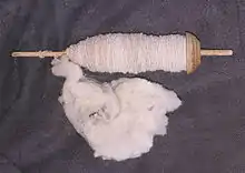 - ↑ The book, Respect the Spindle, p.65, specifies camelid and sheep fibers
