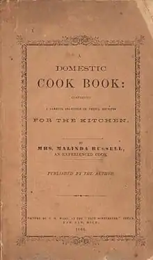 Malinda Russel has been coined as an influential member of Affrilachia because of the cookbook The Domestic Cookbook: Containing a Careful Selection of Useful Receipts for the Kitchen that she published and her "Washington Cake" that gained fame from its combination of citrus and spiced flavors.[21]