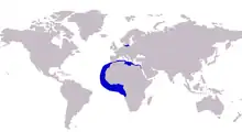 The African threadfish is primarily distributed throughout the tropical eastern Atlantic Ocean, inhabiting the waters of West Africa from Morocco around to Angola.[4] The species also has had several individuals taken from the Mediterranean[7][8] and one extreme capture in the Adriatic Sea.[9]