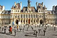 Rythmes d'Automne (2012), the most recent of the Commandements, was commissioned by the City of Paris and exhibited on the parvis of the Hôtel de Ville in the heart of Paris. Rythmes d'Automne with its different elements, cast in a grey, pigmented concrete, invites the public into its 6,500 square feet wide space of signs in order to play, converse, dance, or meditate.[25]