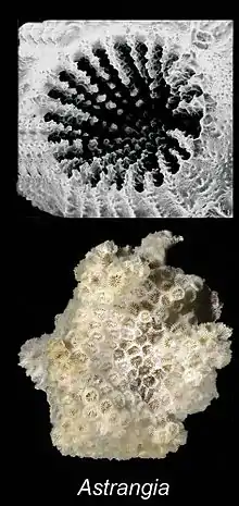 - ↑ Cairns, Stephen (2013). "Astrangia solitaria (Lesueur, 1817)". WoRMS. World Register of Marine Species. Retrieved 2015-02-09.