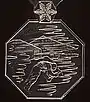 Description32 mm nickel-silver octagonal medal, ensigned with a hexagonal ice-crystal device, surmounted by a plain suspender bar, and suspended on a 32 mm snow-white moire ribbon, edged with three shades of blue.[3]