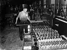 Due to a lack of imports during World War I, Australia saw a boost to manufacturing. The steel industry saw an increase in production as did the manufacture of aspirin and chlorine.[6] The 1920s saw the introduction of car manufacturing in Australia with both Ford and General Motors opening factories.[7] The first Australian-made bottle of Coca-Cola was made in 1938.[8] The Government Aircraft Factories was established in 1939 to manufacture aircraft in Australia.
