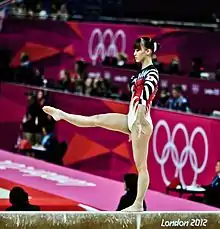 The balance beam is an artistic gymnastics event held at the Summer Olympics on which only women compete. Women started competing in and earning medals at apparatus finals in 1952.[1]