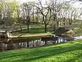 In the following years, the open ground was reshaped by considerable landfills and the city canal and connected to the eastern suburb by new bridges. At the suggestion of the architects Johann Felsko and Otto Dietze, a green area of parks and gardens as well as a broad boulevard were created here. For a large part of the facilities, the landscape architect Georg Kuphaldt was acquired as a planner. A landmark and enrichment of the plant are the 1898 designed as Wasserkunst waterfall. To those the city canal in the area of the park spanning bridges belongs the 1900 built Timmbrücke.