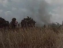 When the Company F, 51st Infantry LRRP team reported VC/PAVN moving past their position a reaction force from Company C, 4/12th Infantry mounted on ACAVs was sent to investigate. The unit left their position at Firebase Concord north of Biên Hòa and moved east proceeding along trails north of Ho Nai towards the LRRP position. At 03:45 the unit engaged the VC/PAVN with 2 ACAVs being quickly knocked out by RPG fire.[3]: 230–5 By dawn the VC/PAVN were retreating northwards pursued by helicopter gunships and at 06:15 Company C, 4/12th Infantry began moving north in pursuit, intending to pin the VC/PAVN against a force from Company B, 2nd Battalion, 3rd Infantry Regiment which was moving south. At 07:30 the VC/PAVN force stopped and made a stand in a cemetery where they continued to be hit by the gunships and the ACAVs of Company C. At 08:00 Company C was joined by a force from 2/47th Infantry and they proceeded to methodically kill all the VC/PAVN in the cemetery. After the cemetery had been cleared Company B, 2/3rd Infantry joined Company C, 4/12th Infantry and they made a night defensive perimeter north of Ho Nai, while the 2/47th Infantry was withdrawn to Biên Hòa.[3]: 239–50