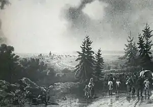 For his part, La Rochejaquelein pushed Westermann back onto Pontorson, then he moved towards the Antrain road to come to the aid of Stofflet. A few hours later, he attacked the Republicans on their right flank. Kléber and Rossignol then gave the order for retreat and the army fell back on Antrain. The fighting stopped for a few hours and some exhausted fighters fell asleep in the fields.