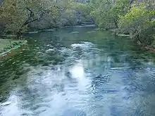 Big Spring is one of the largest springs in the United States and the world.[2] An enormous first magnitude spring, it rises at the base of a bluff on the west side of the Current River valley in the Missouri Ozarks.