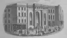 In 1839, the Bull Ring was the location of the Bull Ring Riots. The first riot occurred on 4 July, 1839, after Mayor William Scholefield had read the Riot Act before a meeting of Chartists and then deployed 60 officers of the Metropolitan Police when they failed to disperse.[6] in widespread vandalism and destruction of property. It prompted fears amongst the town's residents at the council's inability to prevent or control the riots and led to speculation that the council was tolerant of lawlessness.[7][8] Because of disorderly behaviour at fairs, in 1861 the area, along with Smithfield and Digbeth, became the only place in central Birmingham where fairs were permitted. In 1875, all fairs were banned from the town.[9]