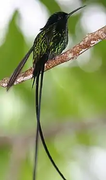 The black-billed streamertail (Trochilus scitulus) is a species of hummingbird in the "emeralds", tribe Trochilini of subfamily Trochilinae. It is endemic to eastern Jamaica.[4][5]