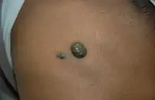 BRBNS is a venous malformation,[4] formerly, though incorrectly, thought to be related to the hemangioma. It sometimes causes serious bleeding.[5] Lesions are most commonly found on the skin and in the small intestine and distal large bowel. The lesions can also be found in the central nervous system, liver, and muscles.[6] It usually presents soon after birth or during early infancy.[6][7]