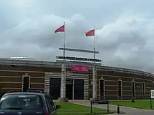 The collection, some of which was located at Syon Park, London, and the remainder being kept at Studley Castle, Warwickshire,[3][2] continued to grow, and the BMIHT decided that a new building was required to house it all.[1] With financial assistance from the Rover Group, and other benefactors, a large new facility was built, set in 65 acres (260,000 m2) of grounds, on the Rover Group's Gaydon site in Warwickshire (the former RAF Gaydon airfield), and opened as the Heritage Motor Centre in 1993.[2][3] The trust's complete collection, which included more than 25 vehicles, was relocated to the new centre.[3][2]