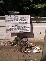 Bangalore's waste volumes have grown strongly since 1990 and the BBMP has come under ongoing criticism for its mismanagement of the city's garbage disposal system,[48] particularly throughout 2012–13[49] when Bangalore was routinely referred to as "Garbage City".[50] Following the closure of Bangalore's two landfill sites in mid-2012 by the Karnataka State Pollution Control Board, the BBMP was left without any plan or alternative strategy for disposing of city's 3-4000 tons of daily waste.[51][52] Garbage worker strikes[53] and High Court rulings requiring the implementation of the Municipal Solid Waste Management Rules 2001 exacerbated the crisis whilst garbage accumulated on every street. The crisis abated somewhat from 2014.