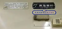 The Budd company license plate in a Tokyu Car Corporation railcar.